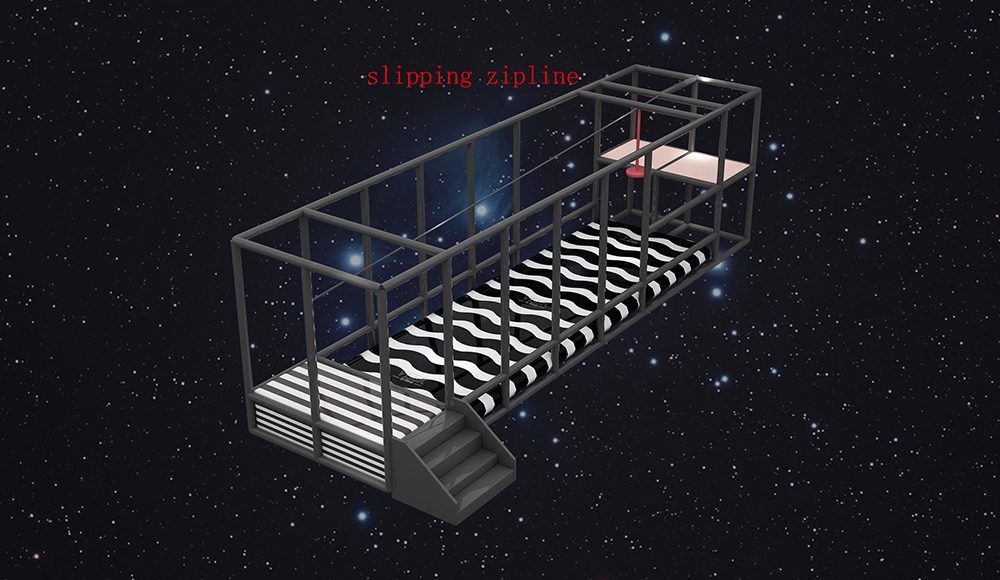 The zip-line begins at one end of the playground, where a sturdy platform stands at a low height above the ground. Children eagerly line up, waiting for their turn to experience the excitement of soaring through the air.The platform is equipped with safety features such as harnesses and handles, ensuring that children are securely fastened before they take off. Parents or playground supervisors are nearby to provide assistance and ensure that each child follows proper safety procedures.