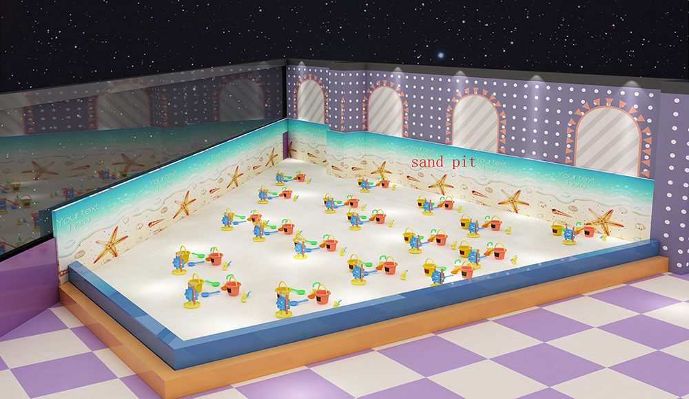 One of independent project for toddler play area. It is very similar to ball but the games inside are very different, Sand is small so can play truck, forklift, funnel, windmill, bucket, shovel, and so many plastic toys. Also can put some plastic house, toddler slides inside bring some much fun for kids.