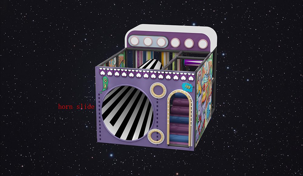 This slide is not your typical playground slide; it’s a magical creation that combines the thrill of sliding with the comfort of soft material.The slide is shaped like a giant horn, with graceful curves and twists that wind their way down from the top to the bottom.